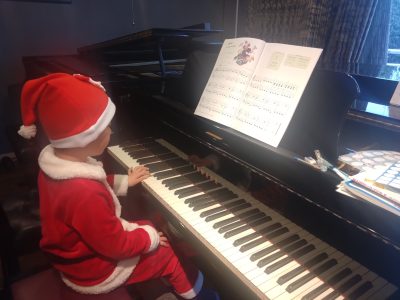 ずっと、サンタのお帽子もかぶって、ピアノを弾いてくれました。